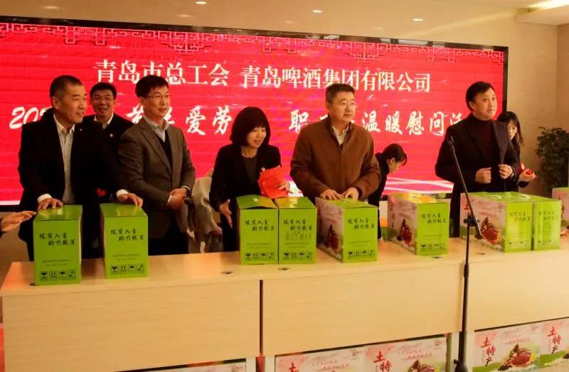 1月20日上午,青岛市总工会携手青岛啤酒集团有限公司,在市总工会职工服务中心综合服务大厅举办2020年春节“送温暖”慰问活动。市总工会党组书记、常务副主席彭建国,青啤集团党委副书记于嘉平为到场的困难劳模和困难职工代表发放慰问物资。