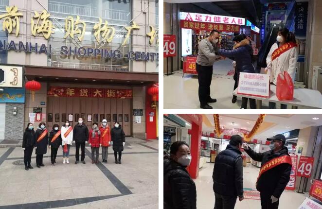疫情防控期间,当得知利群前海购物广场疫情防控工作人手不足的情况后,八大峡街道总工会主席关键带领工会工作者以及街道党员志愿者等一行八人,来到利群前海购物广场加入到抗击疫情的第一线。