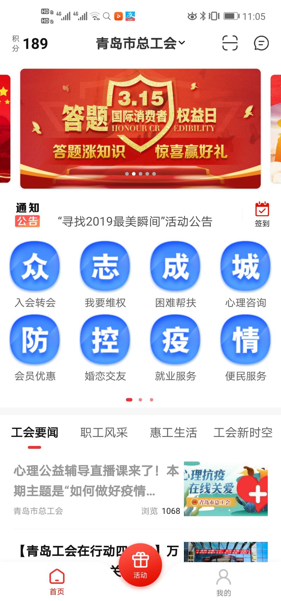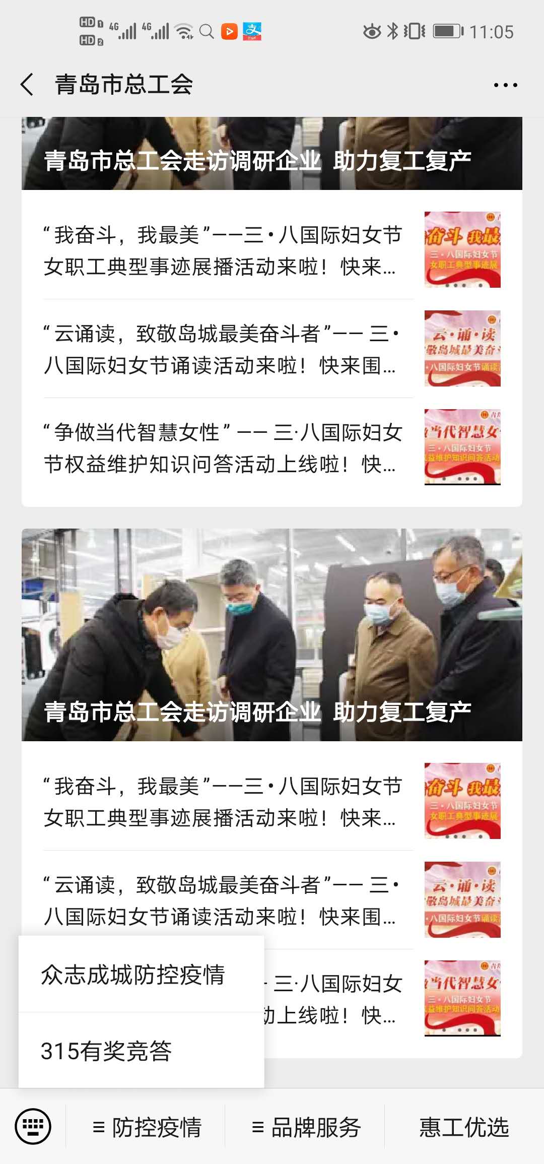 登陆青岛市总工会服务号,点击左下角“防控疫情”版块参与有奖竞答。