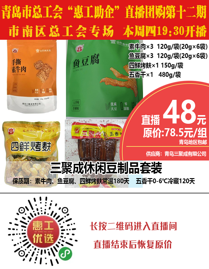 (1)青岛市总工会“惠工助企”直播团购不收取品牌商任何费用,费用全部让利于百万职工;