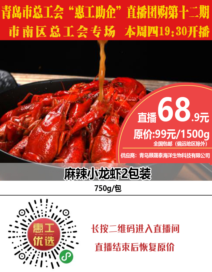 青岛市总工会“惠工助企”直播团购平台位于青岛市总工会官方APP——“齐鲁工惠·青岛行”APP--惠工优选模块,APP的注册职工可以一键登录,直播过程中可以一键购买,全部商品都包邮到家。