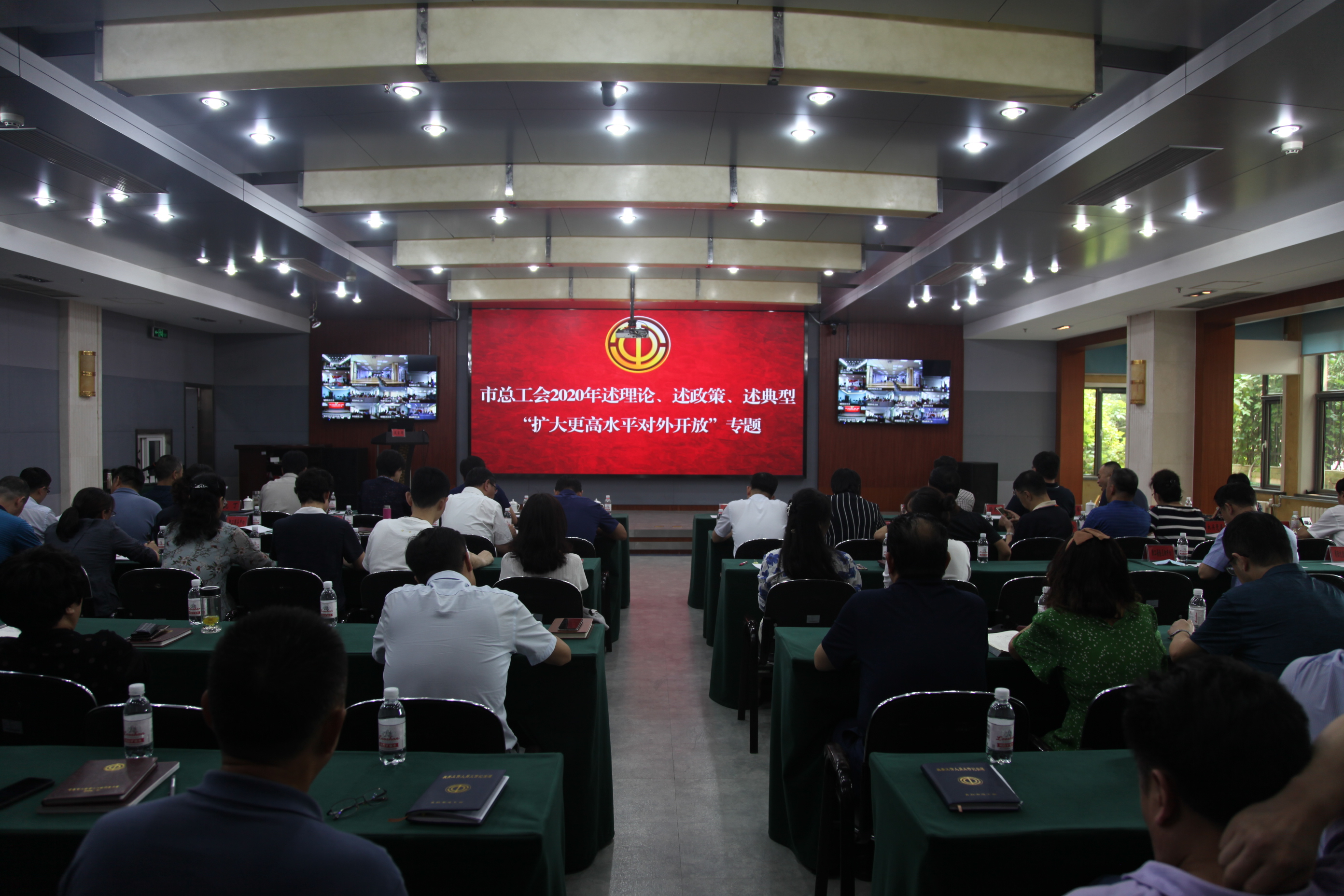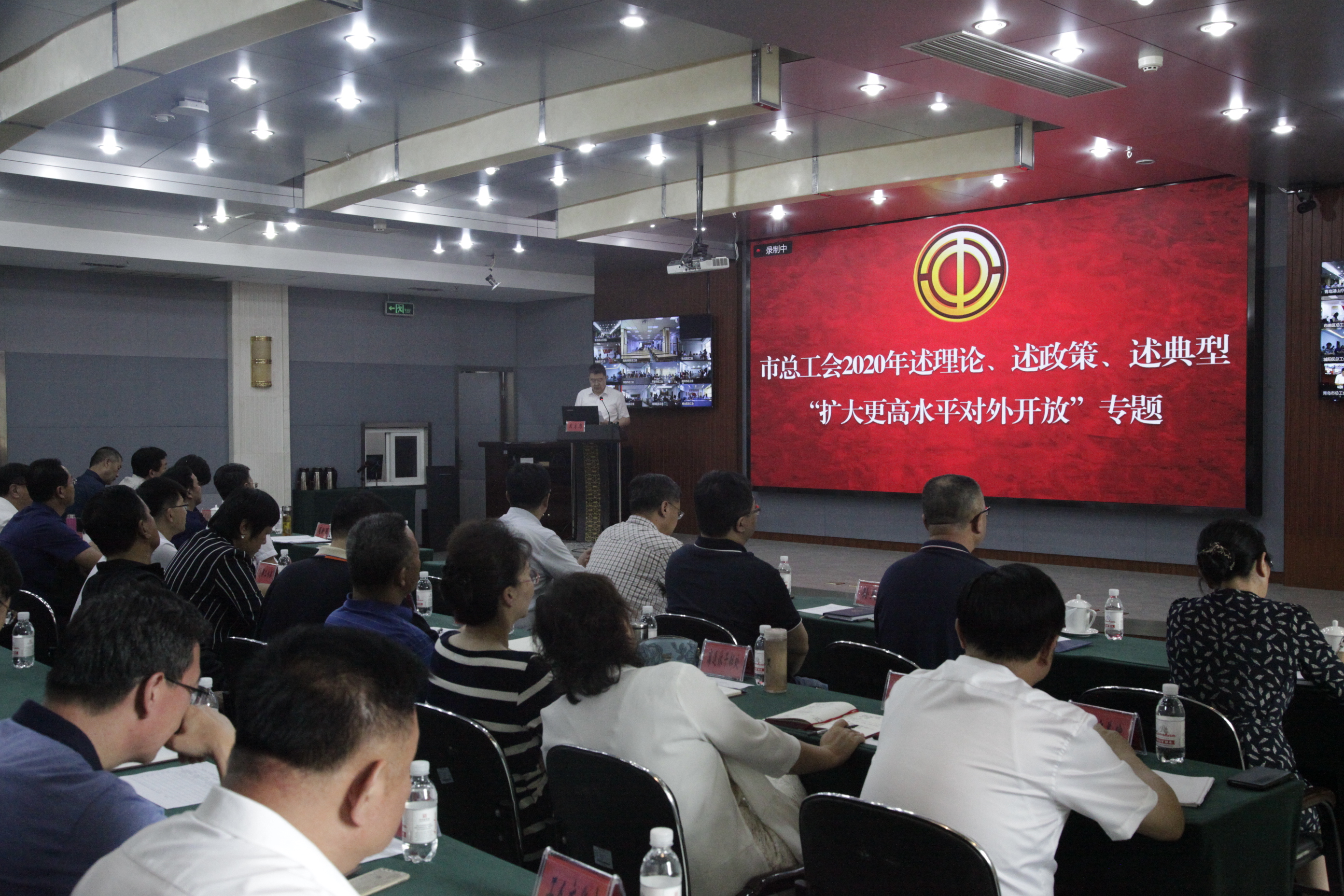 为进一步树立开放思维、坚定开放步伐,认清开放差距、查摆开放难题、增强开放能力、提高开放水平,按照市委组织部《关于开展“扩大更高水平对外开放”专题“三述”的通知》要求,7月15日下午,市总工会召开了2020年“扩大更高水平对外开放”专题“述理念、述政策、述典型”汇报会。市纪委、市监委第六派驻组副组长辛化功同志、市考核办四级调研员周晶琳同志莅临指导,市总工会党组书记、常务副主席彭建国主持会议并作总结讲话。