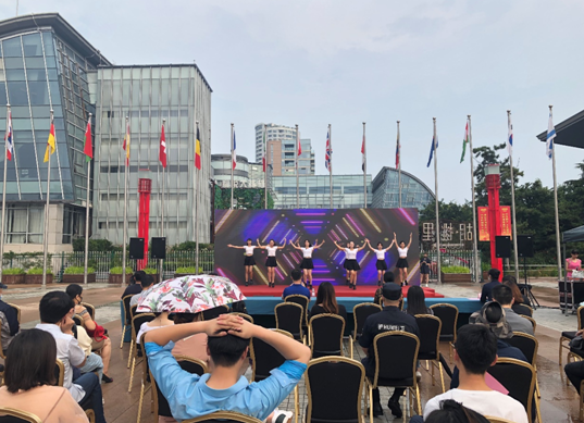 7月15日下午,由青岛市总工会主办,青岛市工人文化宫、青岛旅游集团承办的“劳动者之歌·共同的家园”走进青岛旅游集团慰问演出,演出活动在奥帆中心旗阵广场举行,青岛旅游集团约两百人现场观看演出。