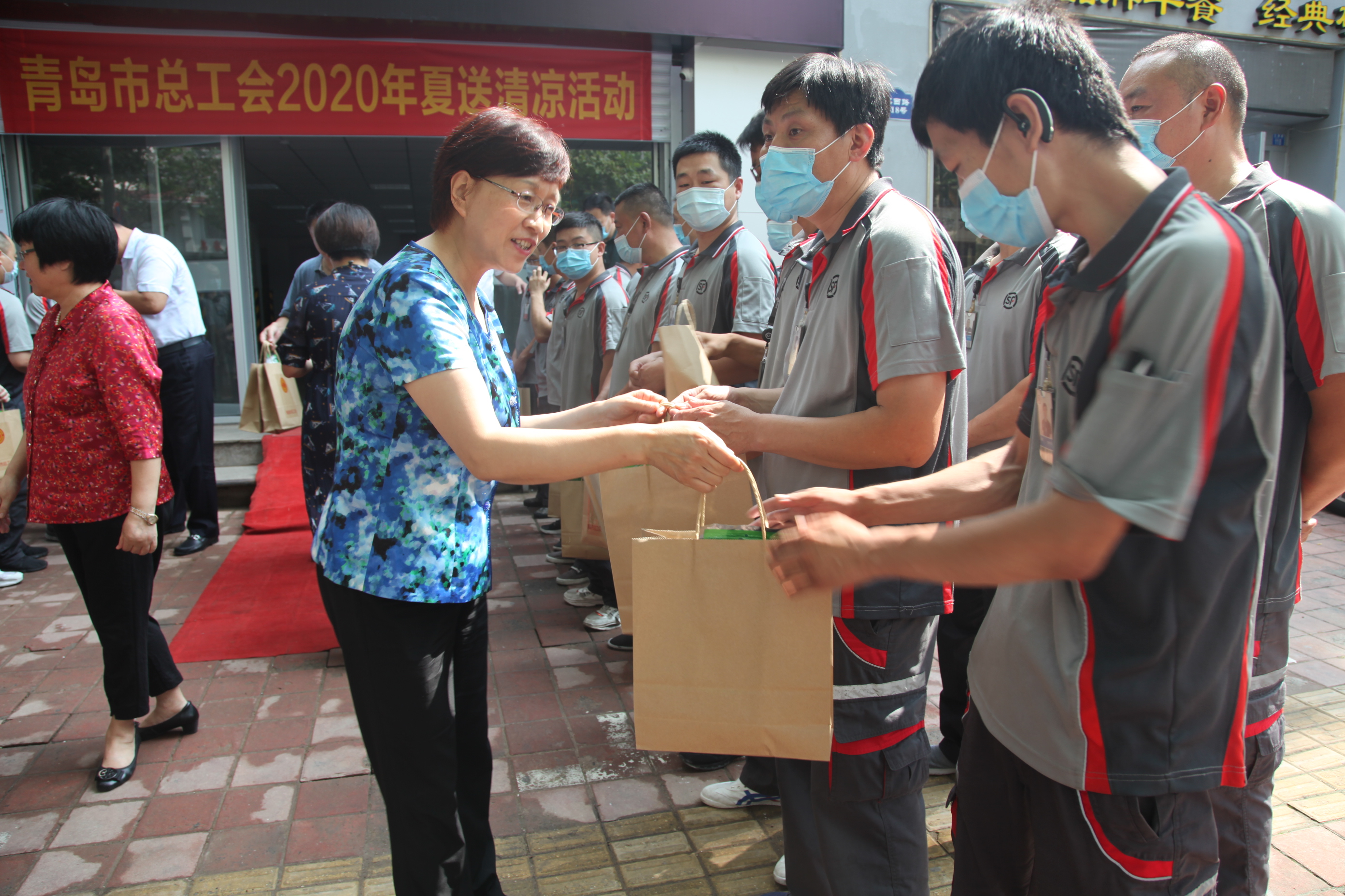 为应对青岛市高温高湿天气和新冠疫情防控对安全生产、生活带来的影响和挑战,确保一线职工的健康权益,青岛市总工会号召各级工会组织在全市深入开展送清凉活动,重点开展对户外一线、高温作业、高空作业、露天施工的人员进行慰问活动,及时为奋战在户外高温高湿一线的职工送去党委、政府和工会组织的关怀,确保单位、职工安全生产,平安度夏。