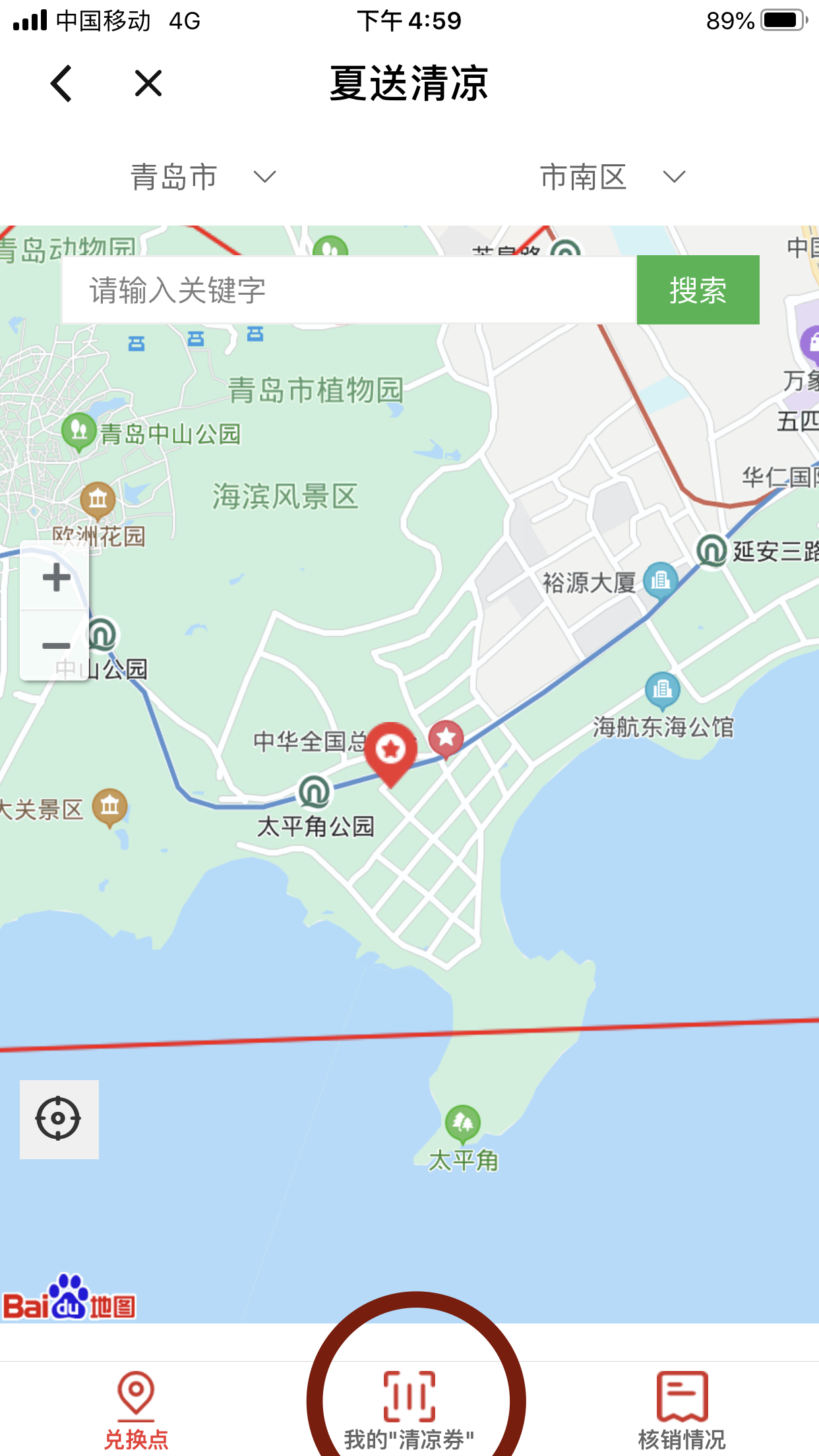 点击我的“清凉券”按钮,出示“清凉券”由驿站站长核销后,方可领取清凉物品(如下图所示)。