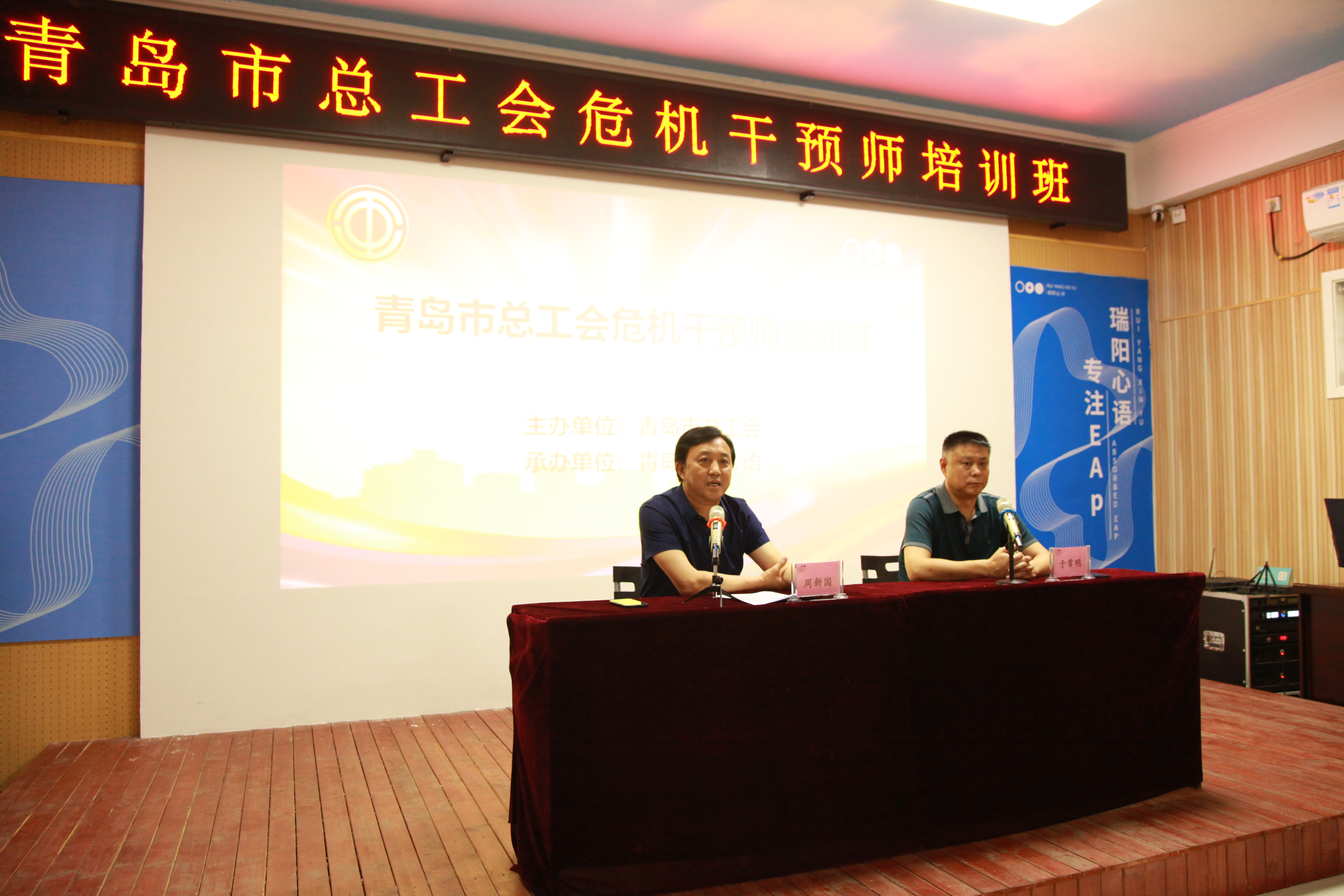 根据市委、市政府《关于加强社会心理服务体系建设的意见》和年度工作要求,为普及危机干预知识,增强危机干预意识,培养危机干预骨干,加强心理危机干预队伍的专业化、系统化建设,7月20日至24日,青岛市总工会2020年危机干预师培训班圆满举办,100余名来自全市各级工会和职工心理健康(EAP)服务站点相关工作人员参加了培训。