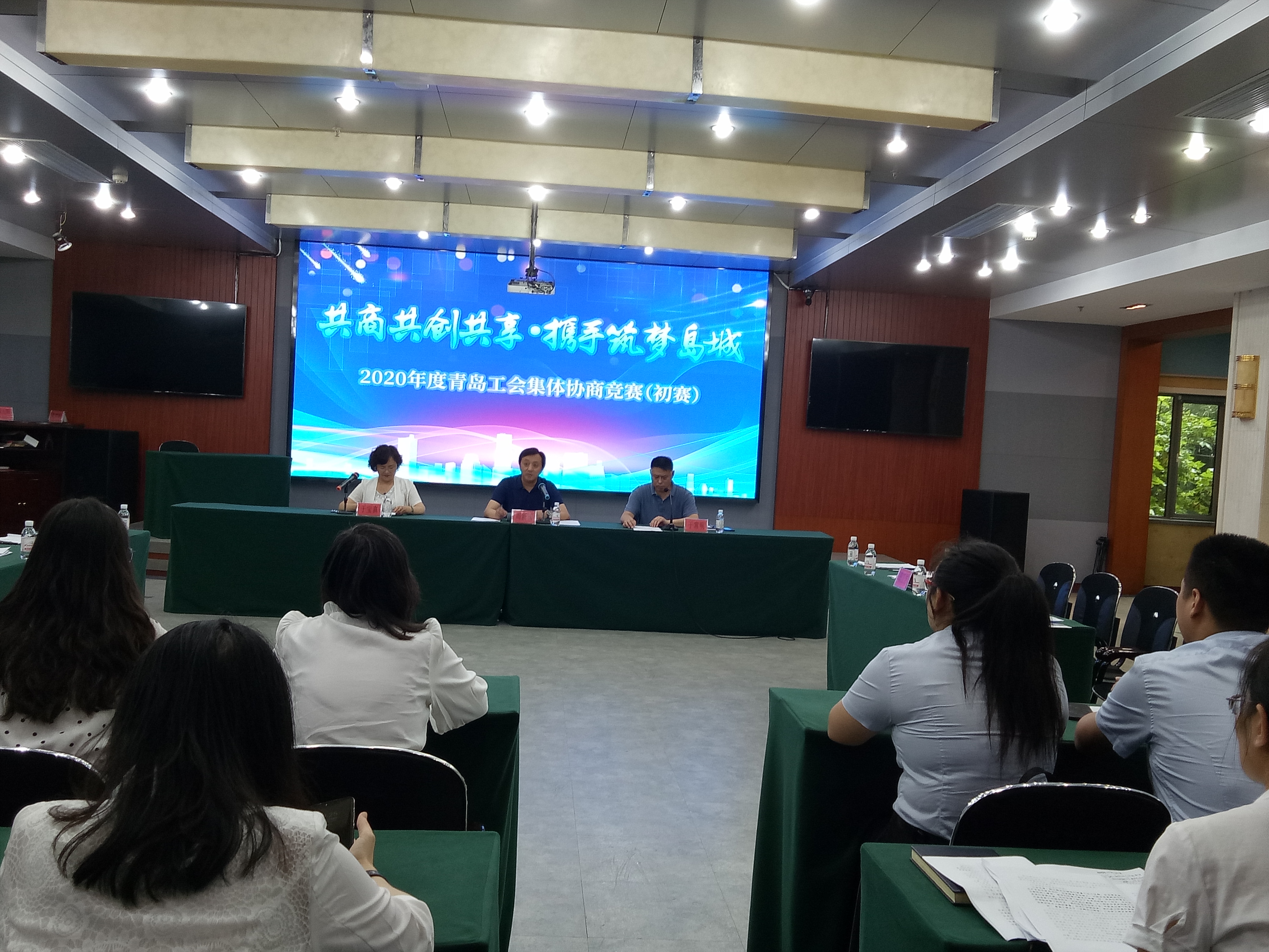 为进一步加强集体协商人才队伍建设,提升工会干部协商能力水平,促进全市劳动关系和谐稳定,7月23日,市总工会在市总机关1104会议室举办以“共商共建●携手筑梦”为主题的2020年度青岛工会集体协商竞赛初赛。