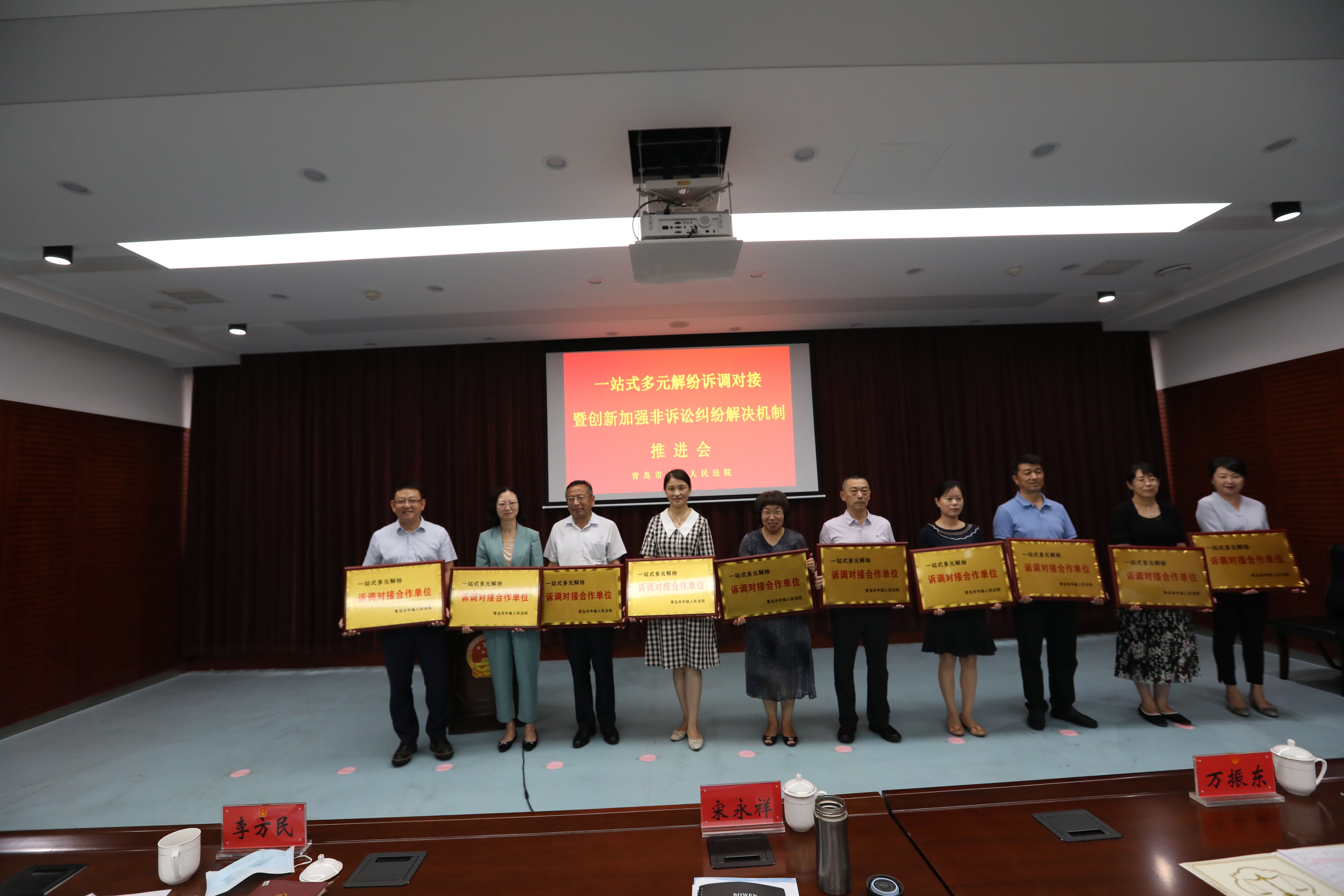 为进一步贯彻落实青政法【2020】13号《关于进一步健全完善非诉讼纠纷解决机制的实施办法》,深化完善劳动争议多元化纠纷解决机制,8月6日上午,青岛市总工会参加市中级人民法院举行的一站式多元解纷诉调对接推进会,签订《一站式多元解纷诉调对接合作备忘录》并授牌。