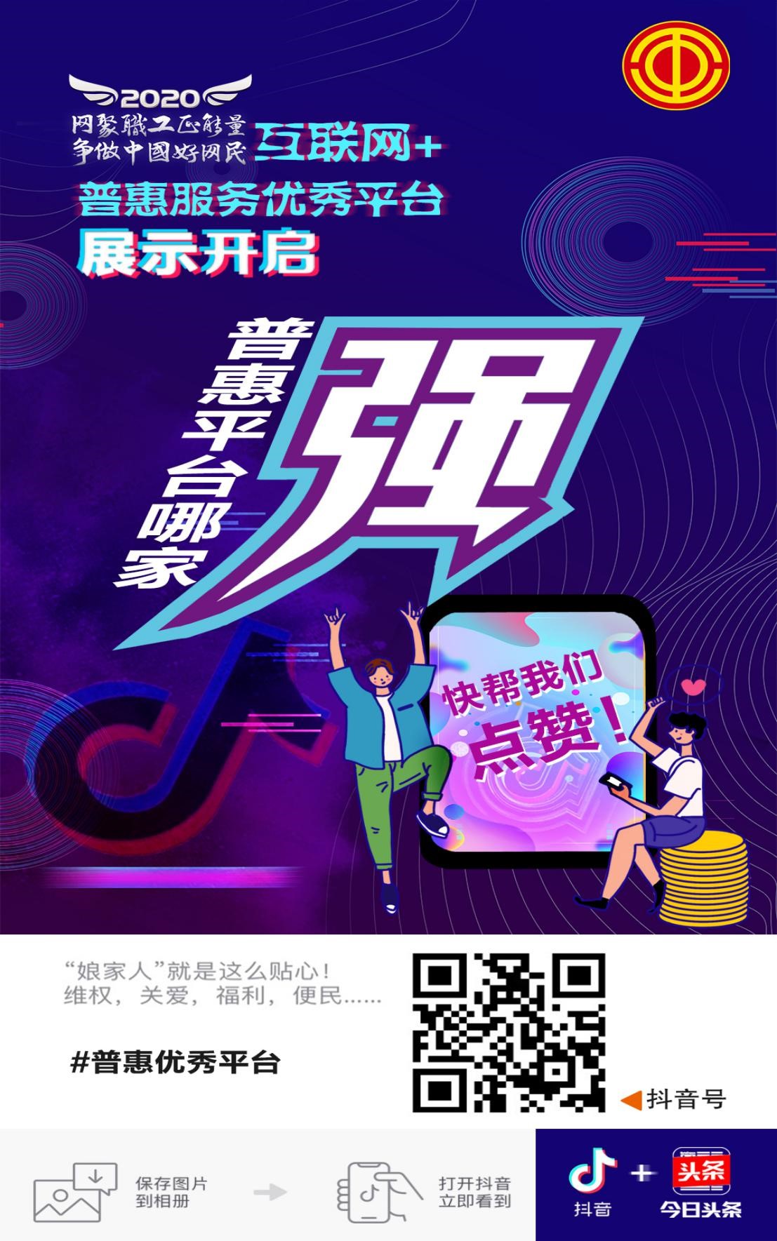 由中华全国总工会、中央网信办主办的2020年“互联网+普惠服务优秀平台”评选活动已经正式启动。青岛市智慧工会普惠服务平台成功入围!职工朋友们,10月26日—10月30日来参与活动,为娘家人投票助力,还可抽取福利奖品!