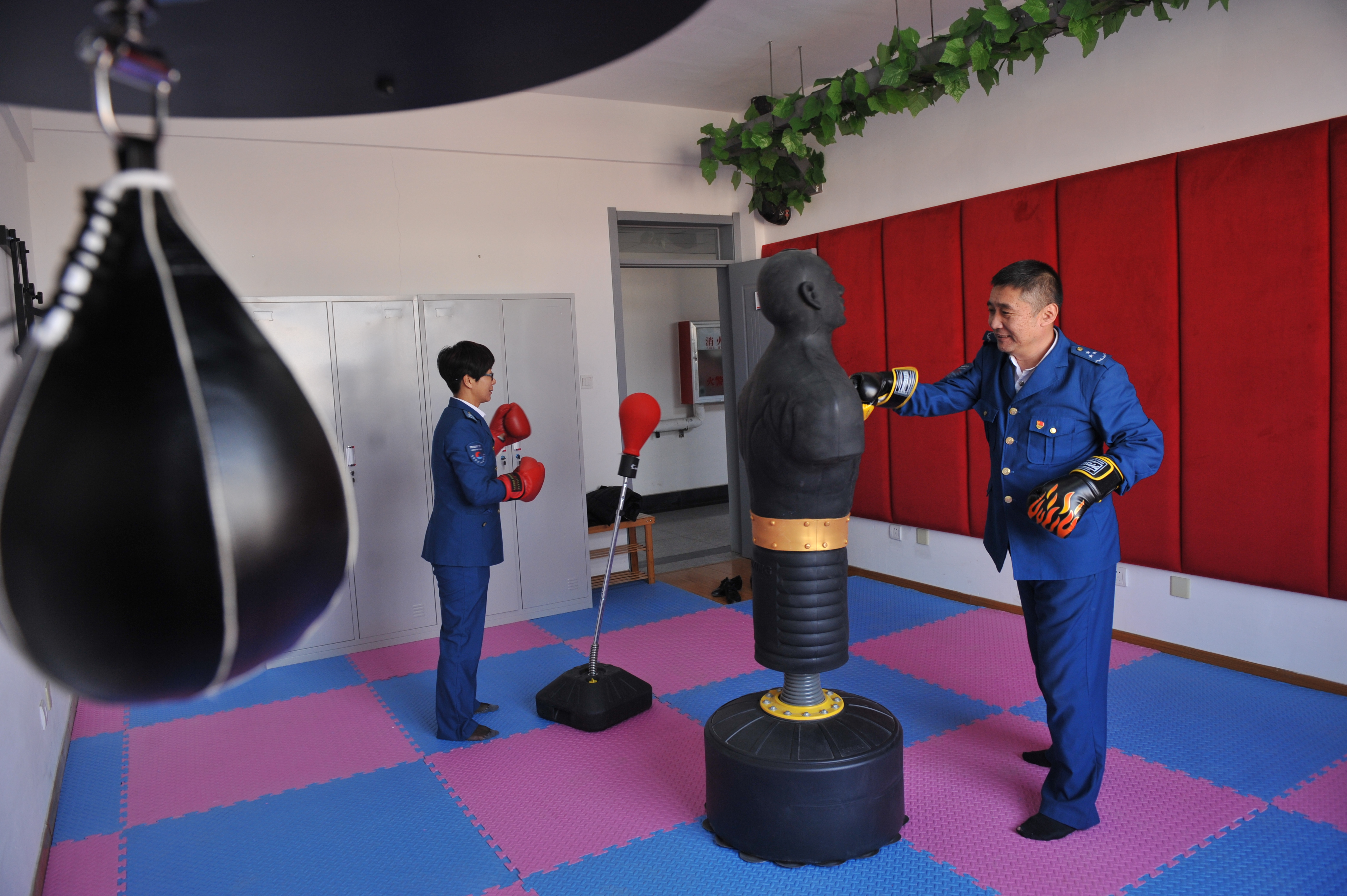公交集团职工在情绪宣泄室通过击打宣泄球释放压力