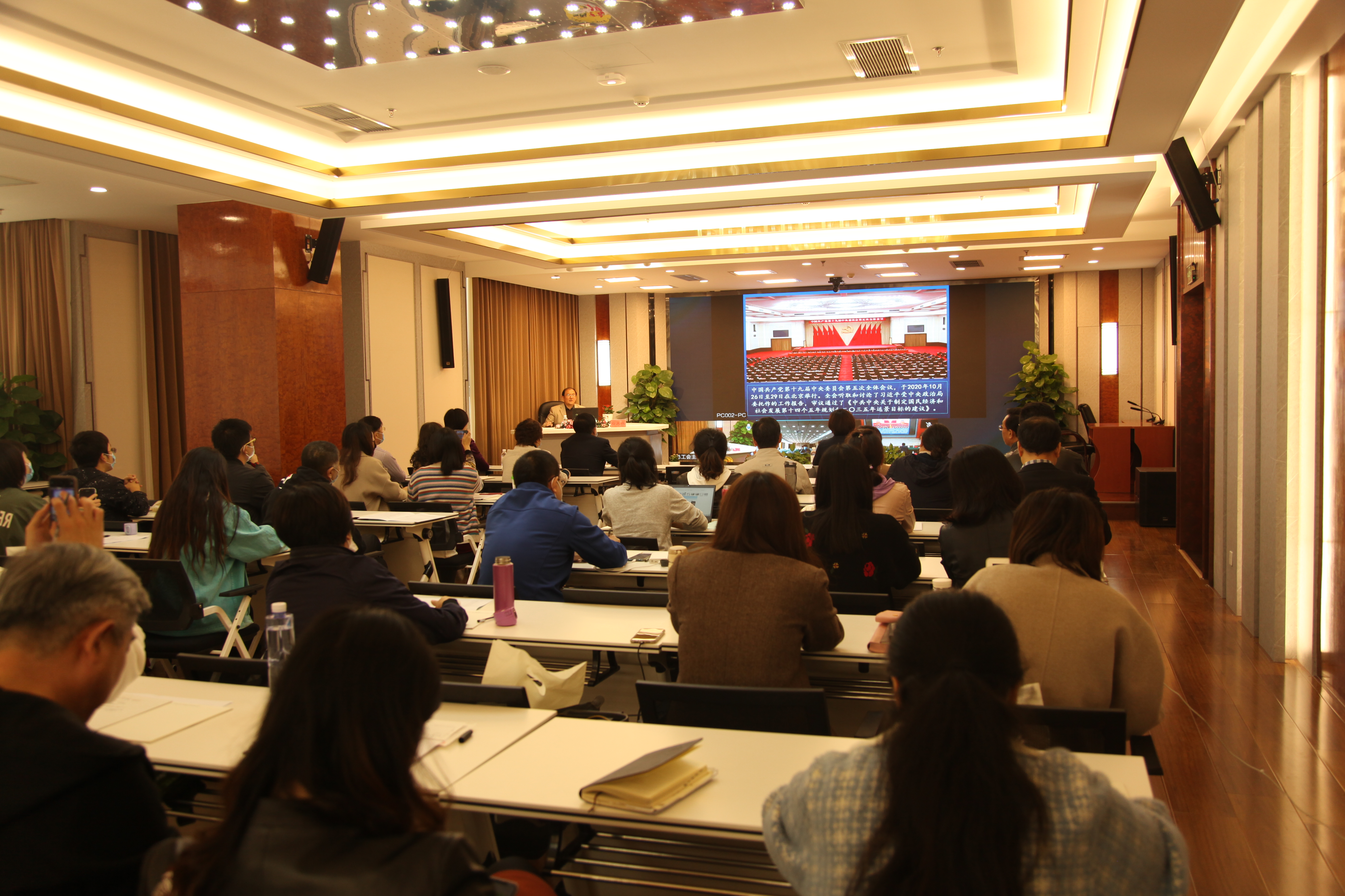 为深入学习贯彻党的十九届五中全会精神,11月16日,市总工会举办党的十九届五中全会精神专题讲座。市总机关全体干部、各直属事业单位、省总驻青单位中层以上干部、工会系统新闻宣传和思想政治工作骨干培训班学员参加讲座。