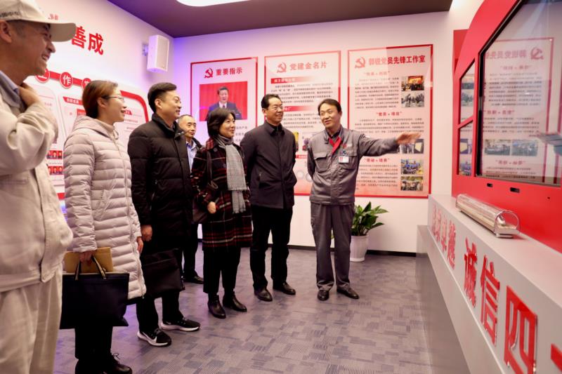 检查验收组一行来到中车四方股份公司。全国人大代表、全国劳模、山东省总工会兼职副主席郭锐,中车四方股份公司工会副主席王正强陪同。检查验收组一行先后考察了磁悬浮列车、公司展厅、总装EMU厂房、车体分厂职工新小家和郭锐劳模创新工作室。检查组对 “职工新小家”的建设及郭锐劳模创新工作室“示范引领、攻关创新和传帮带”的作用表示了高度赞扬。