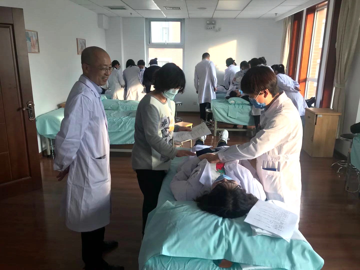 课堂讲授之后,李林海又现场指导参训医务人员进行分组练习,重点练习了穴位定位和推拿实操,掌握了动作、姿势、节奏、呼吸、手法、套路、穴位、力度等操作要领,巩固了理论知识,提升了专业技能。通过本次培训,进一步提高了全院医务人员业务水平,为打造湛山疗养院医疗康复特色,更好地服务劳模职工奠定了人才基础。
