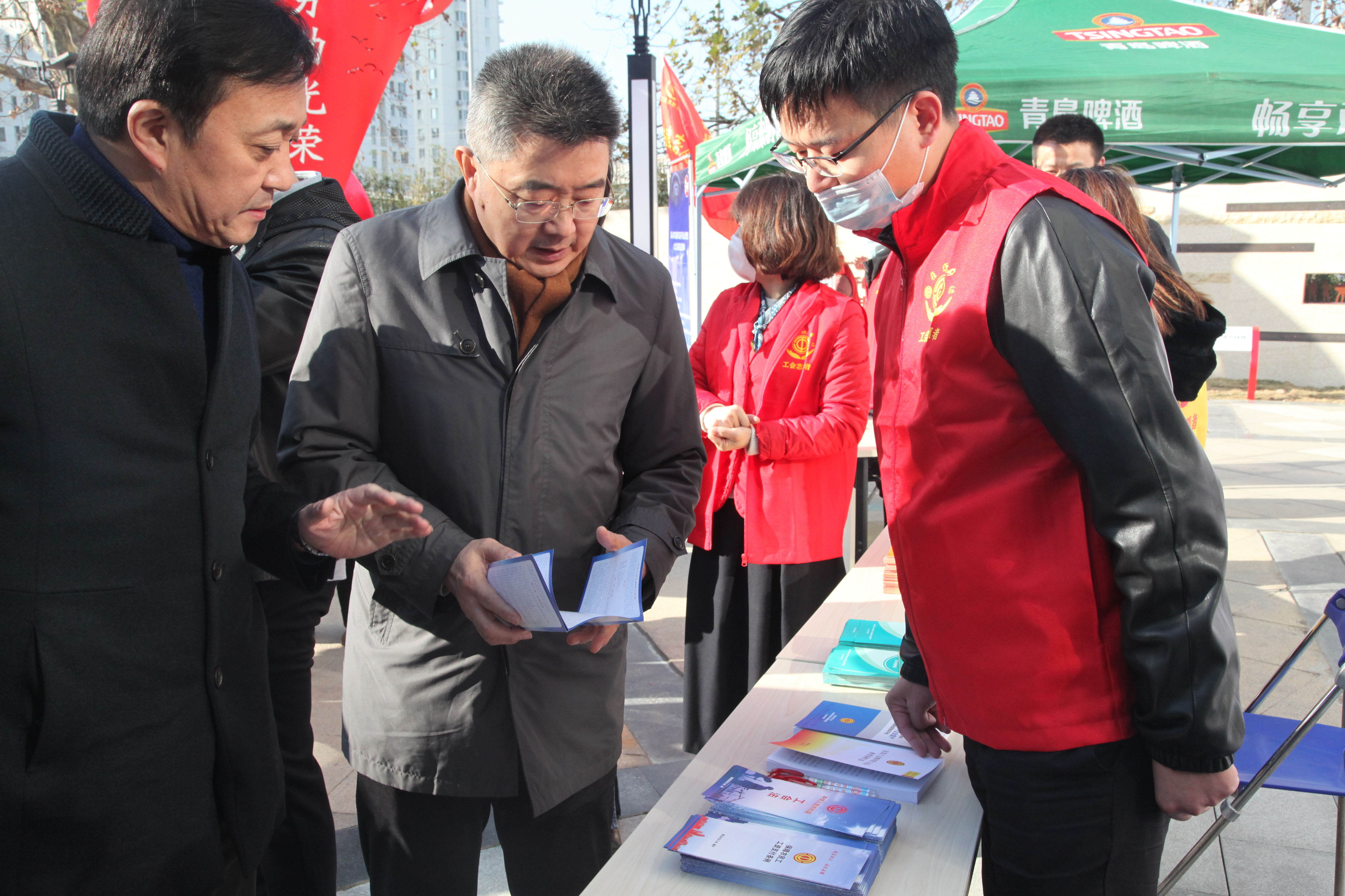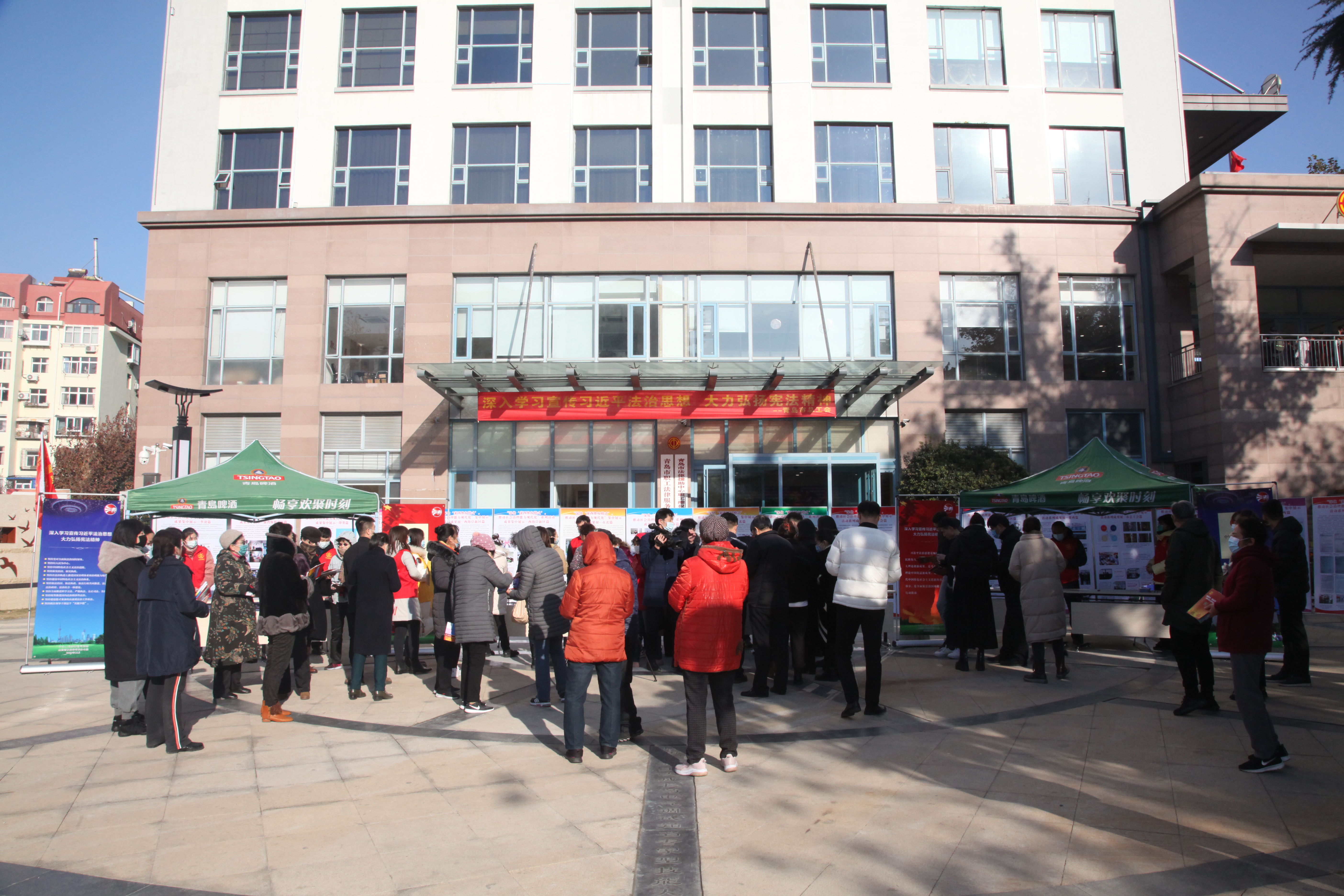 为深入学习贯彻党的十九大和十九届二中、三中、四中、五中全会精神,学习宣传习近平法治思想,大力弘扬宪法精神,维护宪法权威,推动宪法全面实施。在第七个国家宪法日到来之际,12月4日上午,由青岛市总工会组织开展的“12.4”国家宪法日宣传活动在劳动广场举行。市总工会党组书记、常务副主席彭建国,市总工会党组成员、副主席周新国,市总工会副巡视员阮丁等领导参加了本次活动。