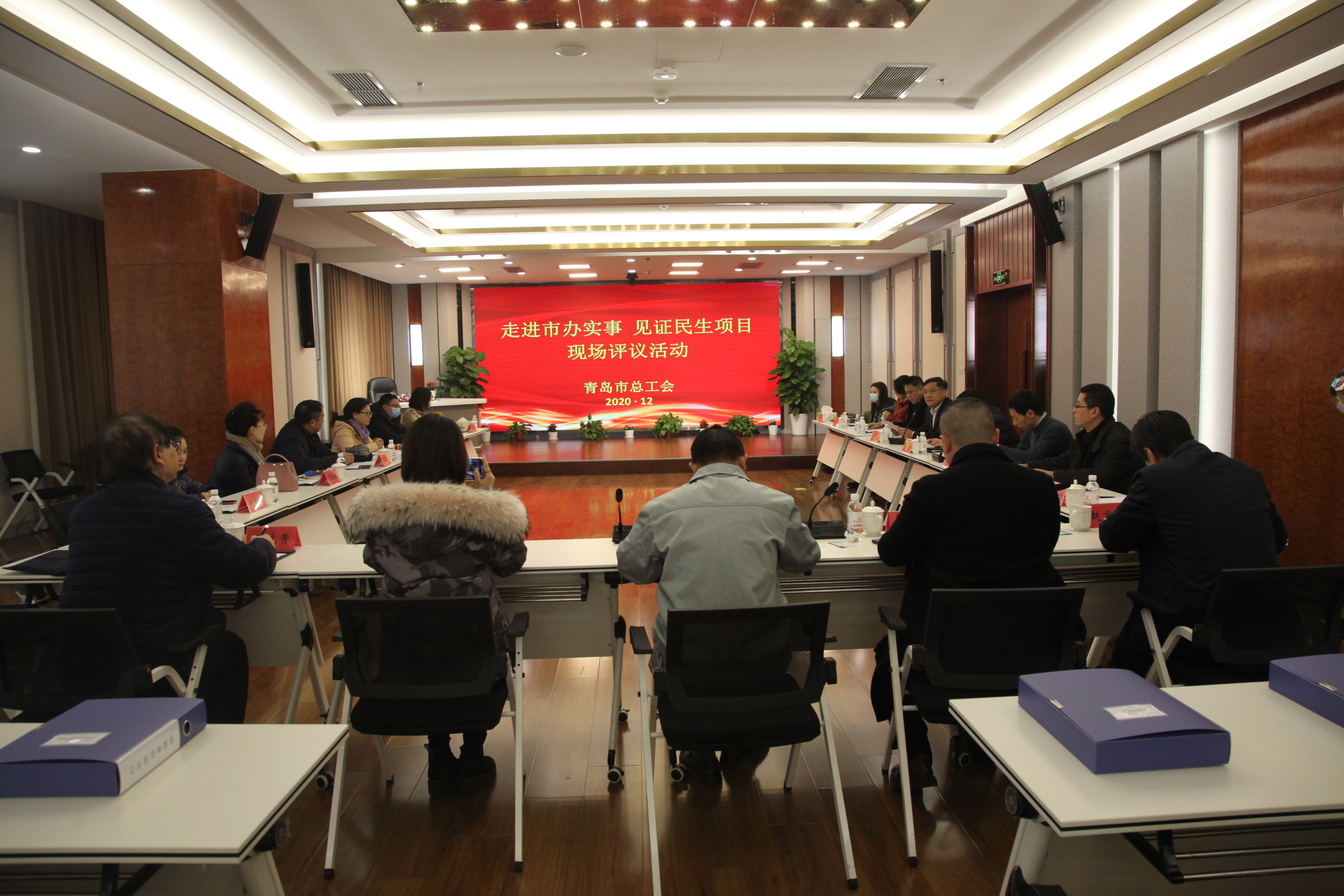 2020年12月11日上午,青岛市总工会邀请人大代表、政协委员、职工和劳模代表、媒体记者等20余人对市总工会2020年承办的市办实事项目进行现场观摩,观看了项目完成情况专题片,并对项目质效进行了评议、提出意见建议。