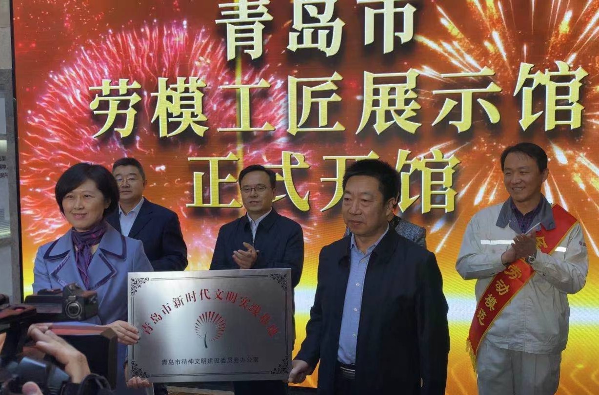 1月6日上午,青岛市劳模工匠展示馆开馆暨新时代文明实践基地授牌仪式在上海路6号青岛市工人文化宫举行。山东省第一个劳模工匠主题展馆——青岛市劳模工匠展示馆正式开馆,并同时被青岛市委宣传部、市文明办命名为新时代文明实践基地。