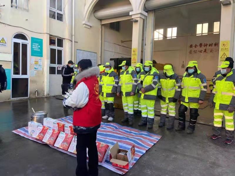 市北区总工会在做好城市困难职工解困脱困工作的基础上,进一步推进工会送温暖常态化、经常化、日常化,把工会组织的关怀与温暖及时送到千家万户,市北区总工会联合友客便利连锁管理有限公司、 山东橡胶谷物业管理有限公司在户外劳动者驿站开展“寒冬送温暖·情暖至人心”慰问活动,工会志愿者们为户外一线劳动者送上姜汤、热奶等物品,让广大户外劳动者在寒冬中也能感受到工会“娘家人”的关怀。