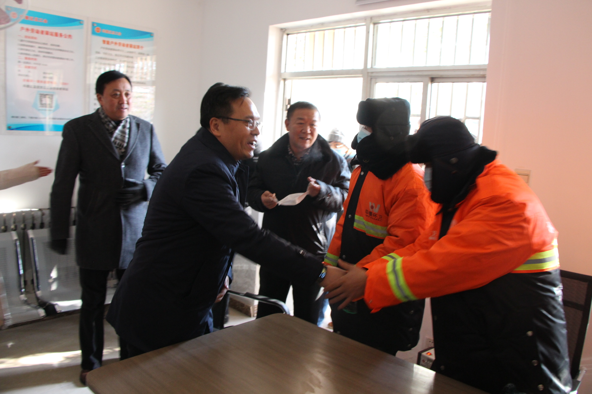 慰问结束后,魏勇一行到即墨区户外户外劳动者驿站进行现场慰问,向正在驿站内休息的环卫工人了解日常工作情况,询问户外劳动者的需求,并为户外劳动者发放了取暖物资。