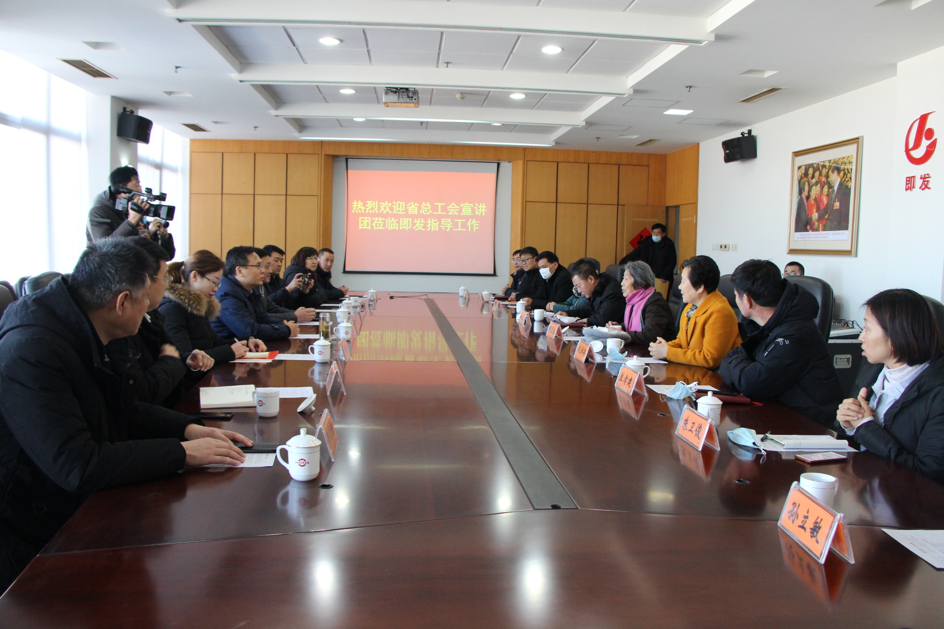 1月7日,山东省总工会党组成员、副主席魏勇一行到基层联系点青岛即发集团股份有限公司开展党的十九届五中全会精神宣讲活动,与集团干部职工进行座谈交流。青岛市总工会党组成员、副主席周新国,即墨区委副书记王宝善等陪同。