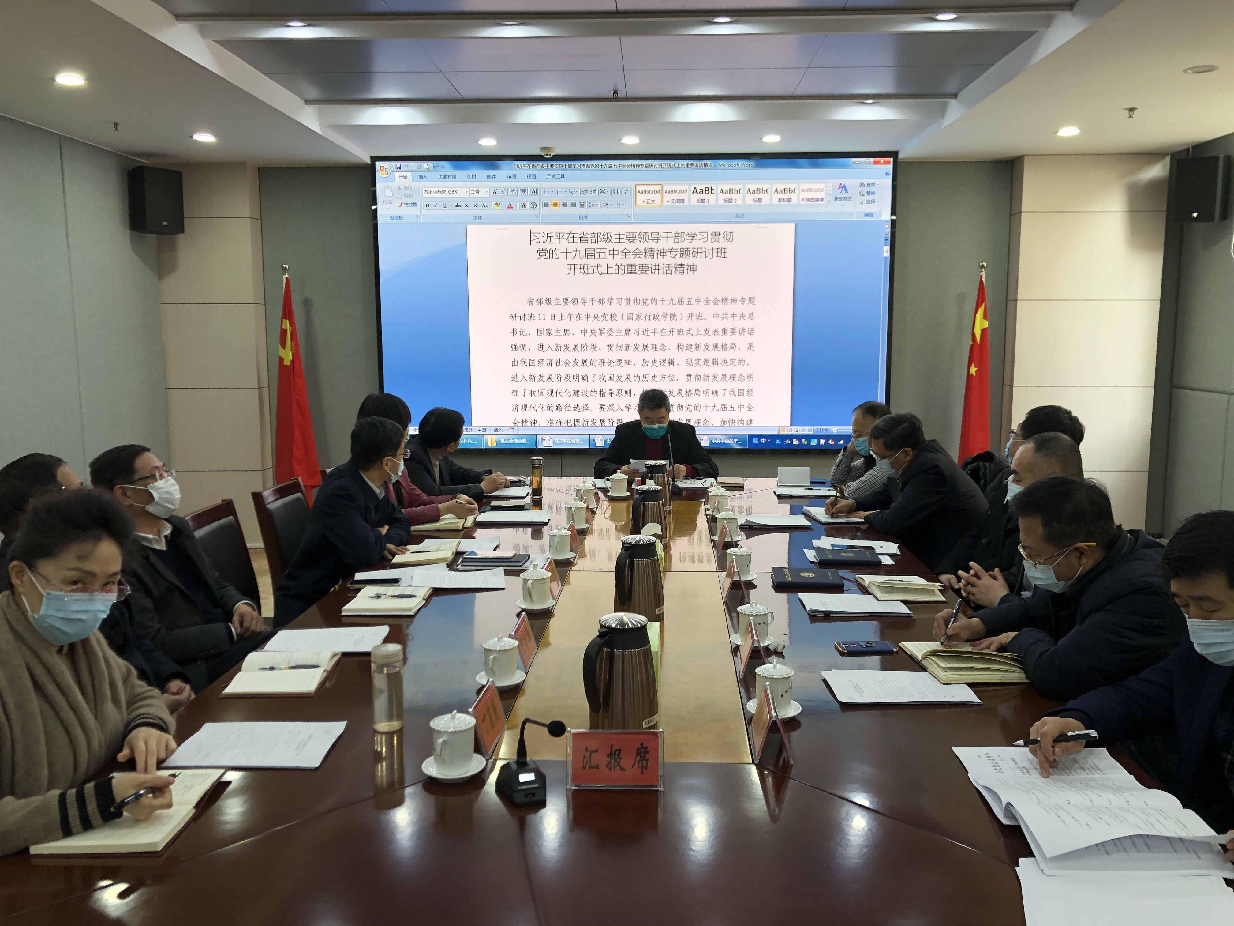 1月19日上午,市总工会党组理论学习中心组召开扩大会议,集体传达学习了习近平在省部级主要领导干部学习贯彻党的十九届五中全会精神专题研讨班开班式上的重要讲话精神,集中学习研讨2020年度党员领导干部民主生活会规定学习内容,传达学习市十六届人大五次会议精神、市政协十三届五次会议精神和省、市疫情防控有关要求。市总党组成员参加会议,副局级领导干部、副巡视员、一级调研员、机关各部门和各直属事业单位负责人列席会议。