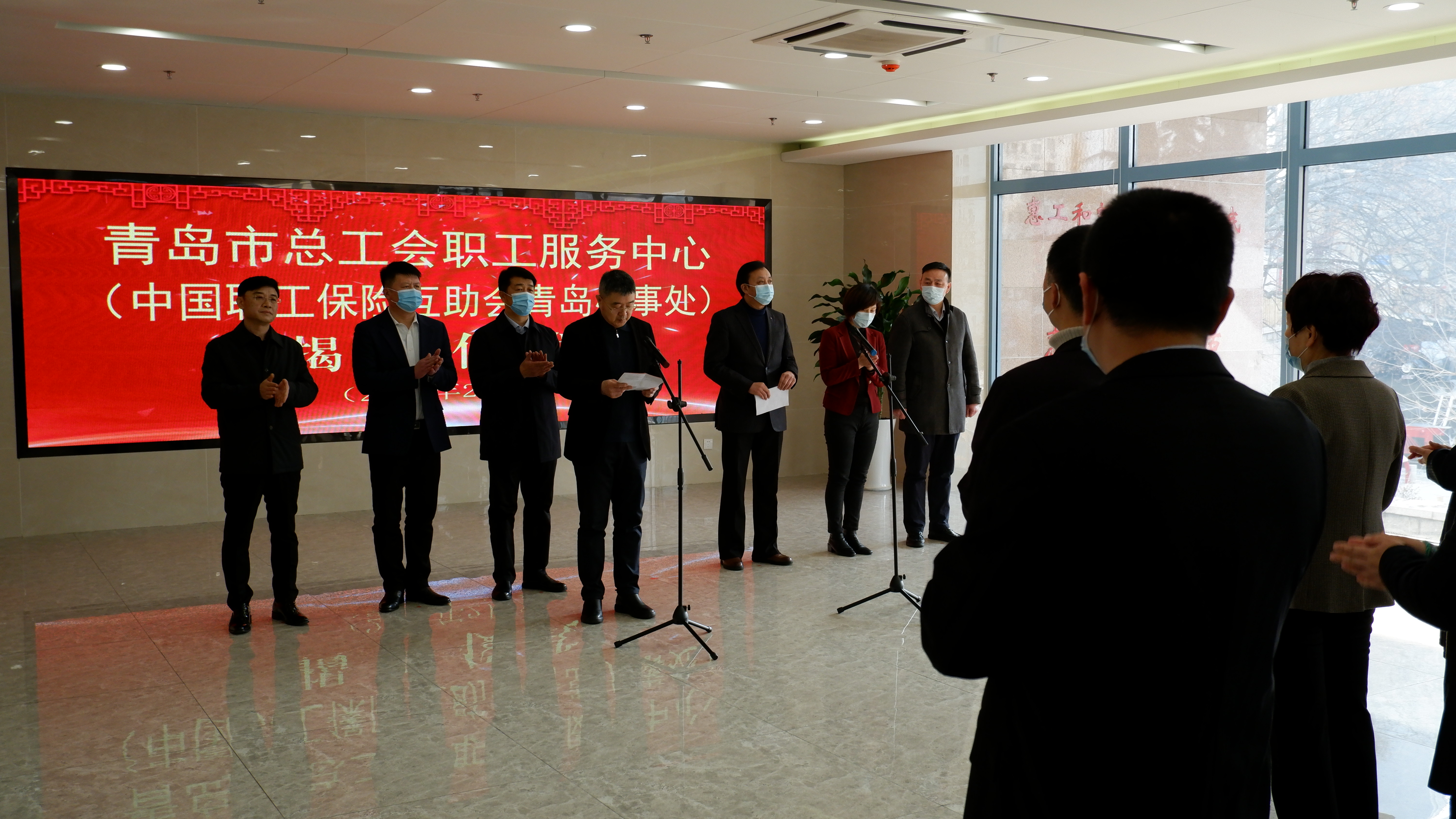 2月1日上午,青岛市总工会职工服务中心(中国职工保险互助会青岛办事处)举行组建成立揭牌仪式。市总工会党组书记、常务副主席彭建国为中心揭牌并作讲话,党组成员、副主席周新国主持仪式,市总工会部分部室负责人出席,职工服务中心全体干部职工参加。