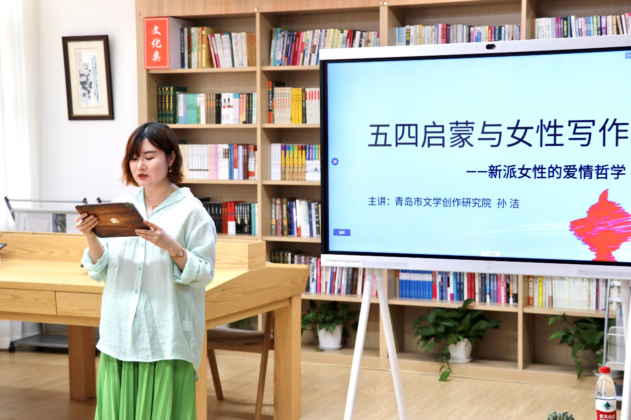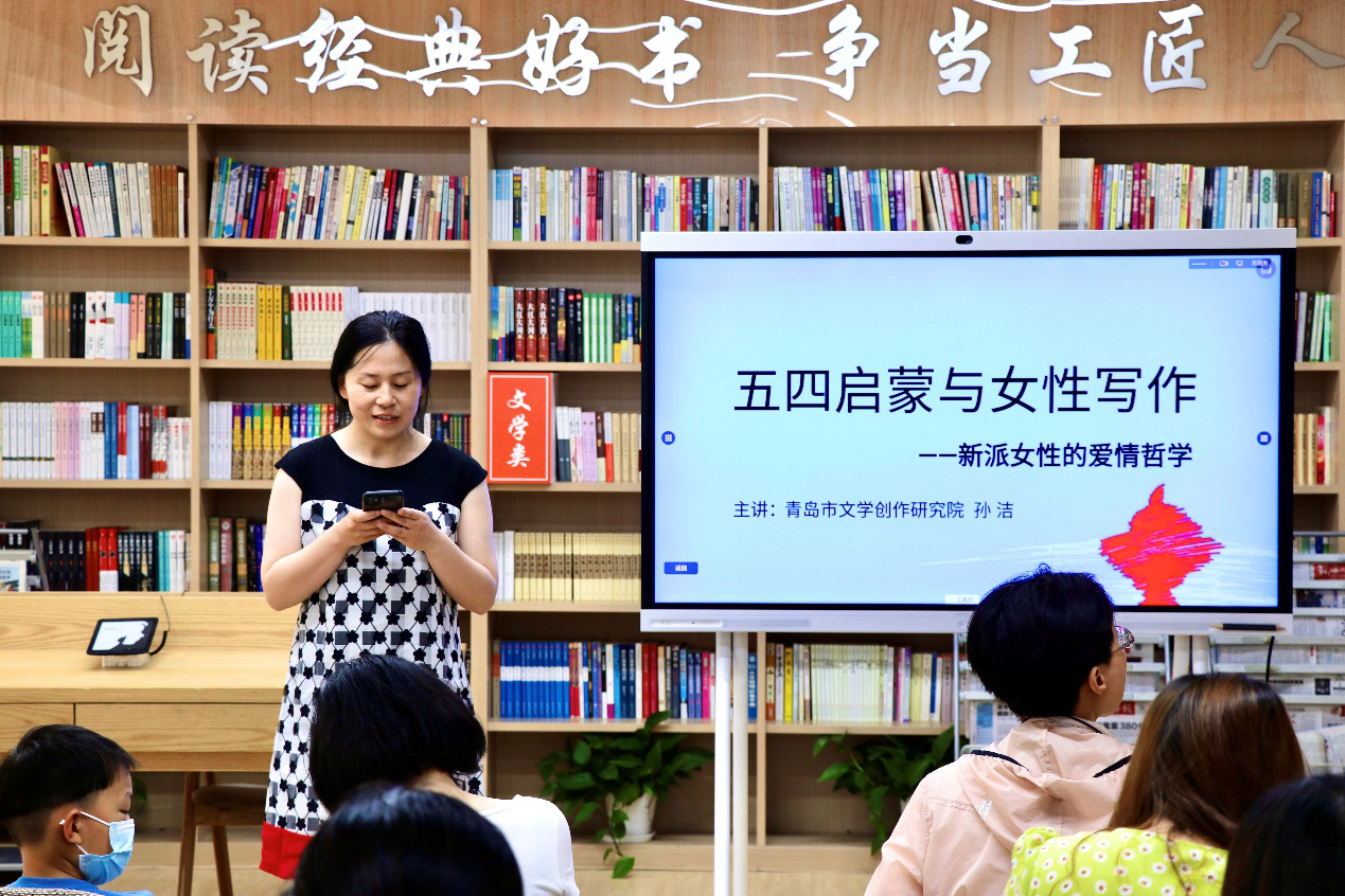 为庆祝中国共产党成立100周年,推动全民阅读工作职工群体中深入开展。6月26日,由青岛市总工会主办,齐鲁工惠APP承办的春圃读书会迎七一专场活动——“五四启蒙与女性写作”专题分享会在青岛市工人文化宫一楼职工书屋举行,活动邀请青岛市文学创作研究院孙洁为本次活动的主讲嘉宾,共有三十余位职工书友参与了本次活动。