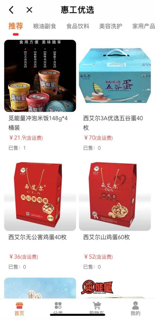 惠工优选商城涵盖七大品类,
