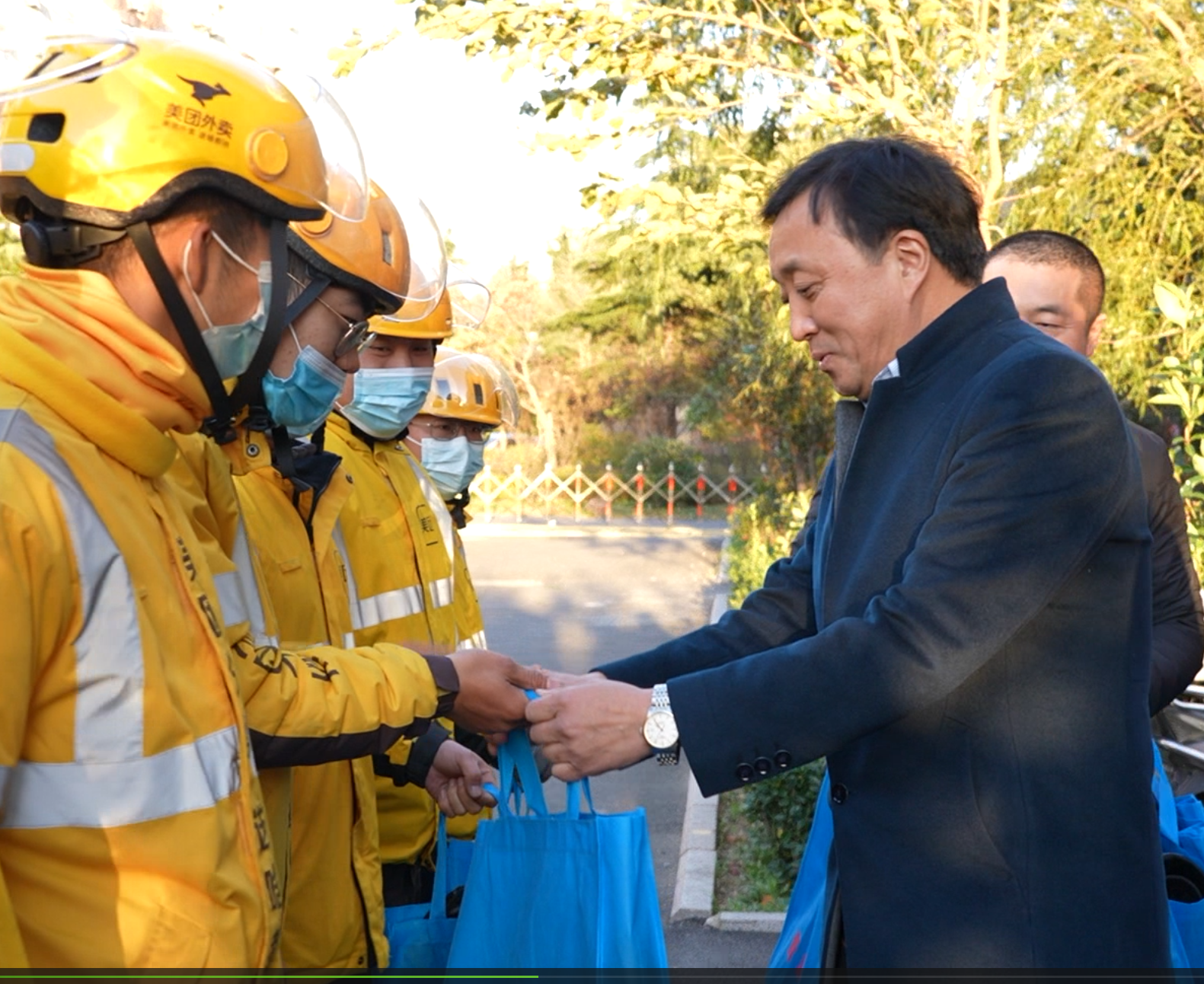 阿里巴巴本地生活政府事务部华北大区总监李燕青感动地说:“在这个特殊的日子,工会领导到我们站点进行慰问并为职工送来了防寒装备,我代表平台和骑士们表示衷心感谢,饿了么平台在青岛有近6000名骑士,后续我们会与市总工会强化联动,保障和关爱骑士们的权益,提升骑士们的生活品质,让他们有足够的幸福感!”李燕青还为青岛市总工会赠送了写有“心系企业职工,热心服务基层”锦旗。