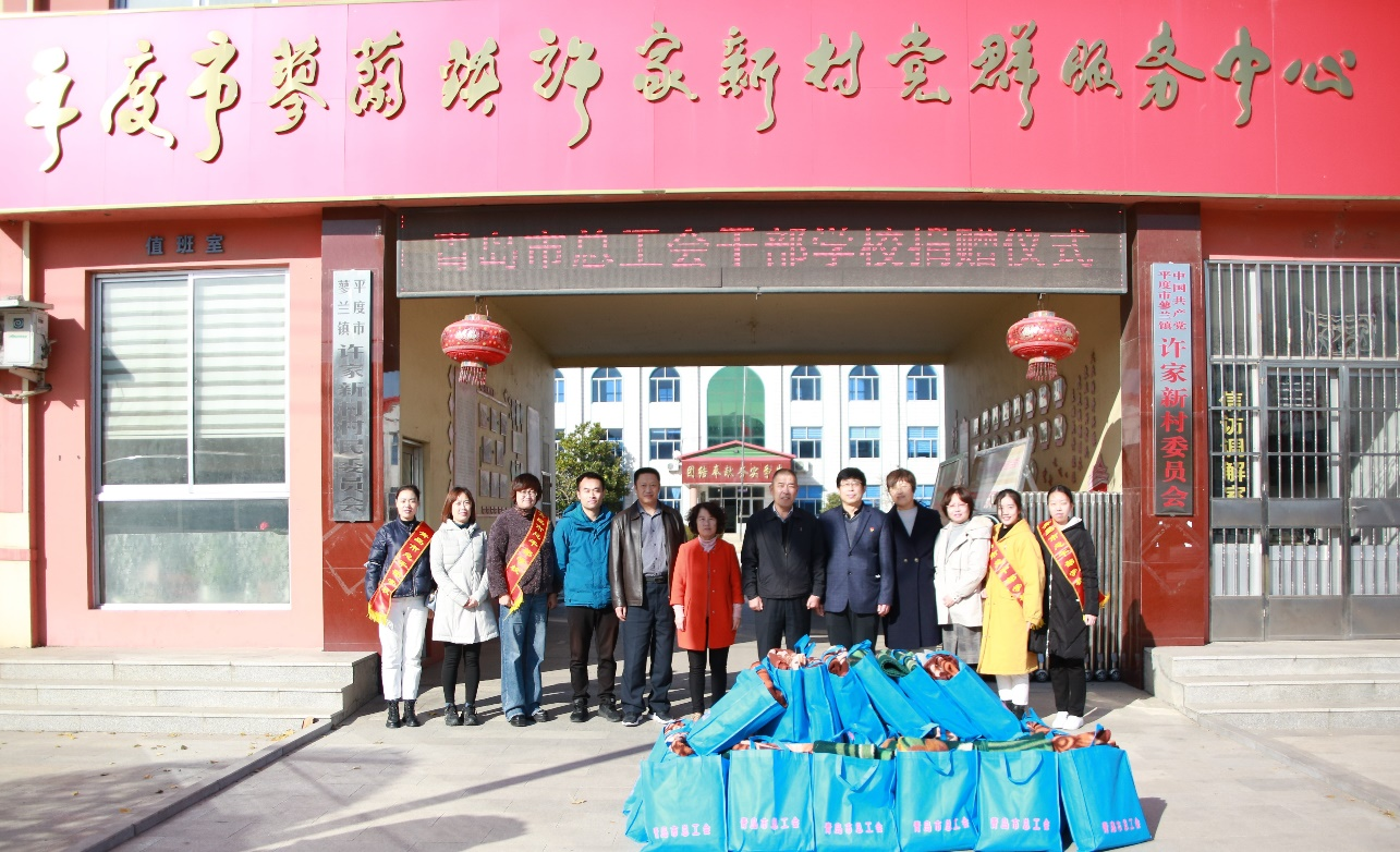 在工作队驻地许家村村委会,市总干校充分了解村建设与村民生活情况,将黄岛校区的厨房电器、毛毯等物资捐赠给许家村,为村民送去温暖。