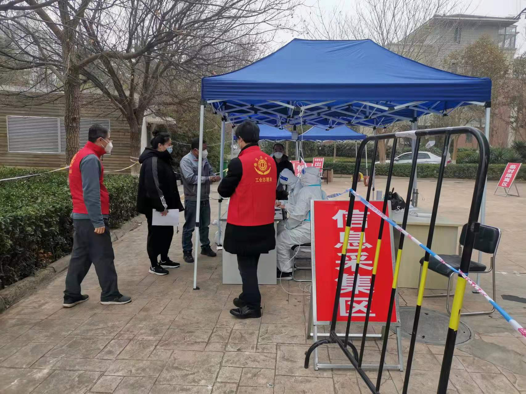 3月13日上午,城阳区总工会组织部分机关工会志愿者来到惜福镇街道盛世美域核酸检测点,开展疫情防控志愿服务活动,协助社区做好疫情防控工作。志愿者们采取“入户敲门”的方式,按楼号、按单元逐户摸排400余户,确保所属核酸检测点人员全部进行核酸检测,为基层社区防疫工作提供有效帮助。