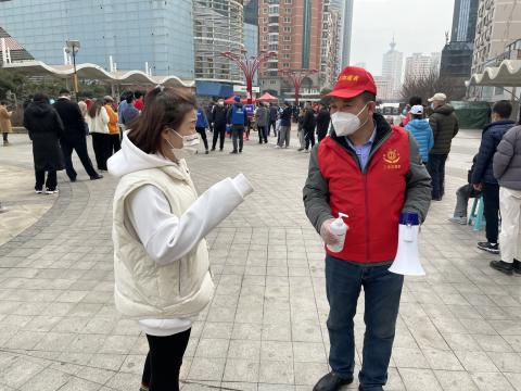 3月15日,中交一航局二公司工会组织抗疫志愿服务活动,配合香港中路街道太古检测点开展全员核算检测工作,并为一线防疫工作人员送上矿泉水、酒精、免洗手消毒液等物资。大国工匠、全国劳动模范管延安作为小分队成员参加志愿活动,现场宣传防疫政策,维持列队秩序。