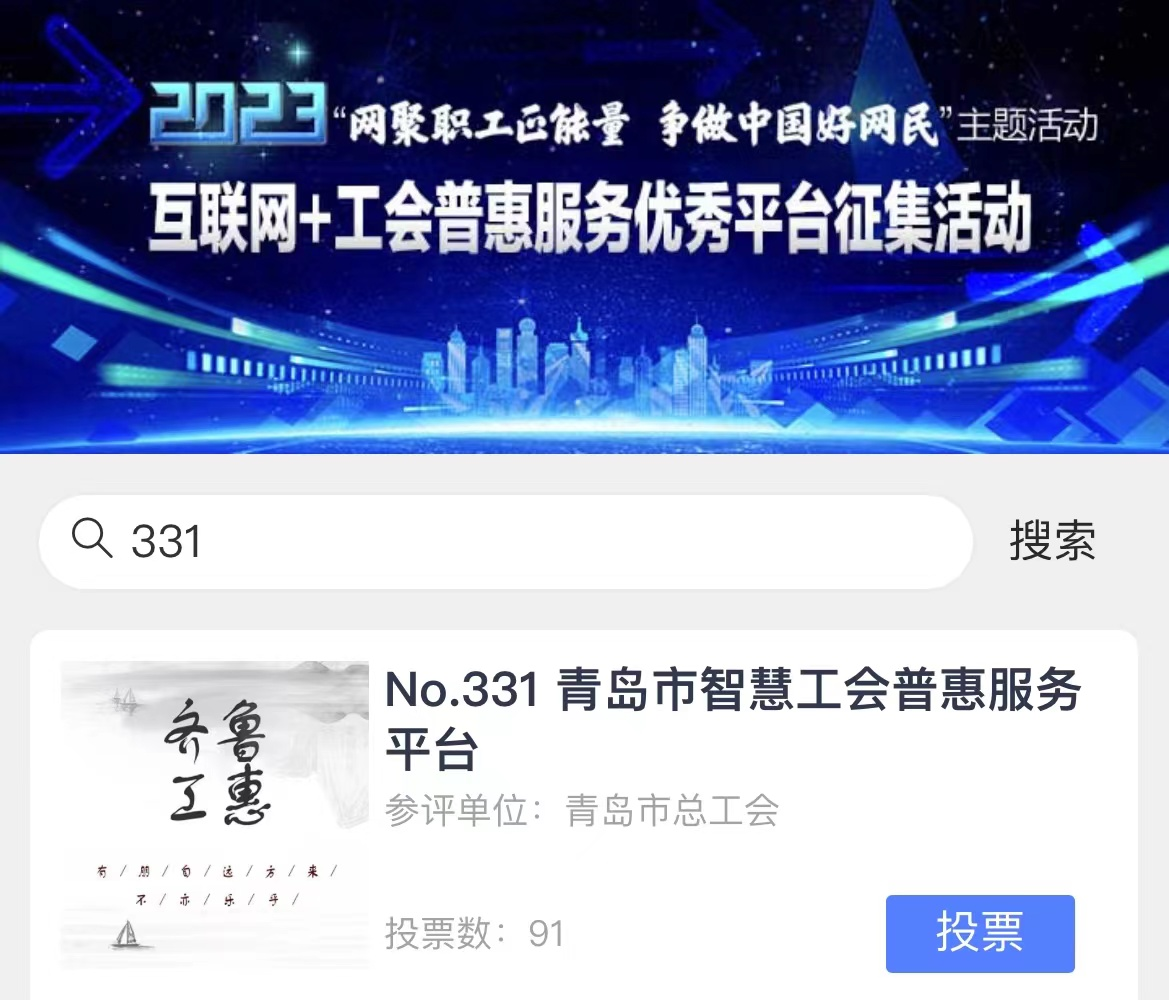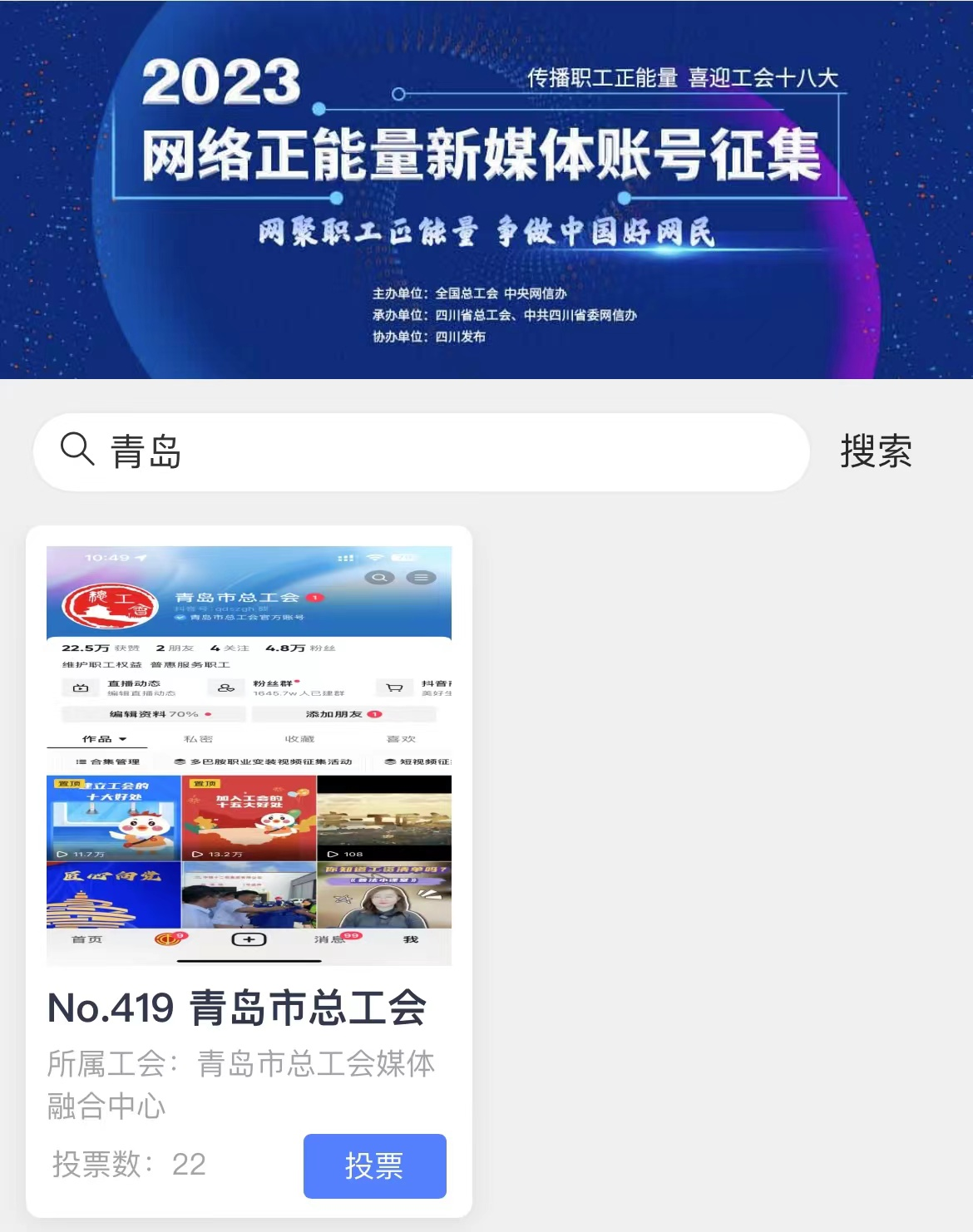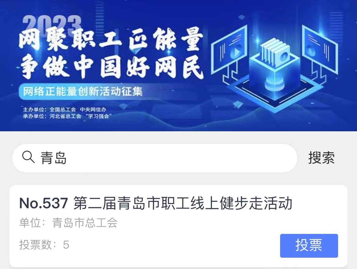 由中华全国总工会、中央网信办主办的2023年“网聚职工正能量 争做中国好网民”主题活动各子项目征集已正式收官,网络投票开启。