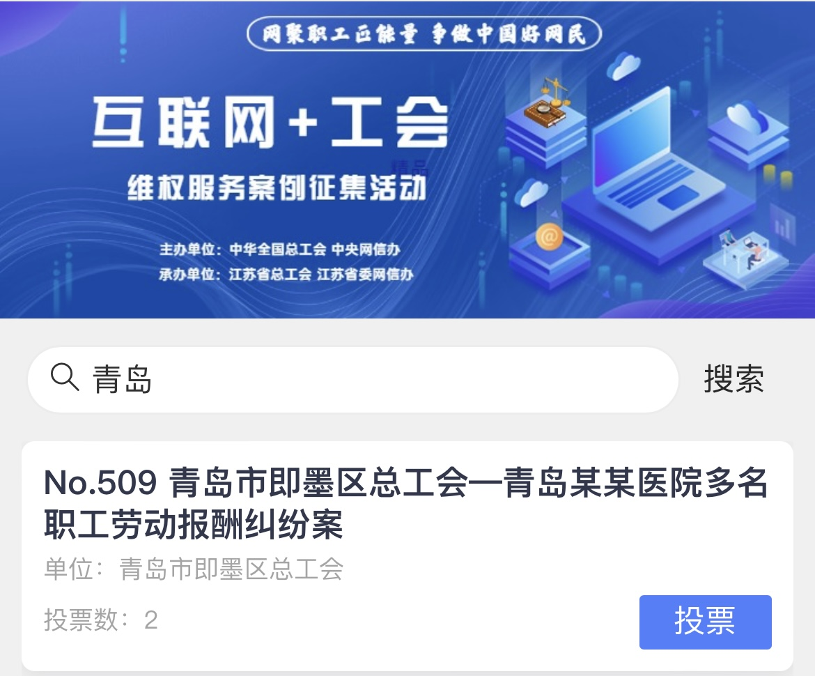 请支持509号“青岛市即墨区总工会—青岛某某医院多名职工劳动报酬纠纷案”