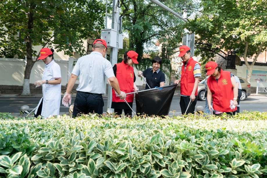 青岛湛山疗养院组织志愿者对院内及门前社区网格内区域进行了清理打扫。