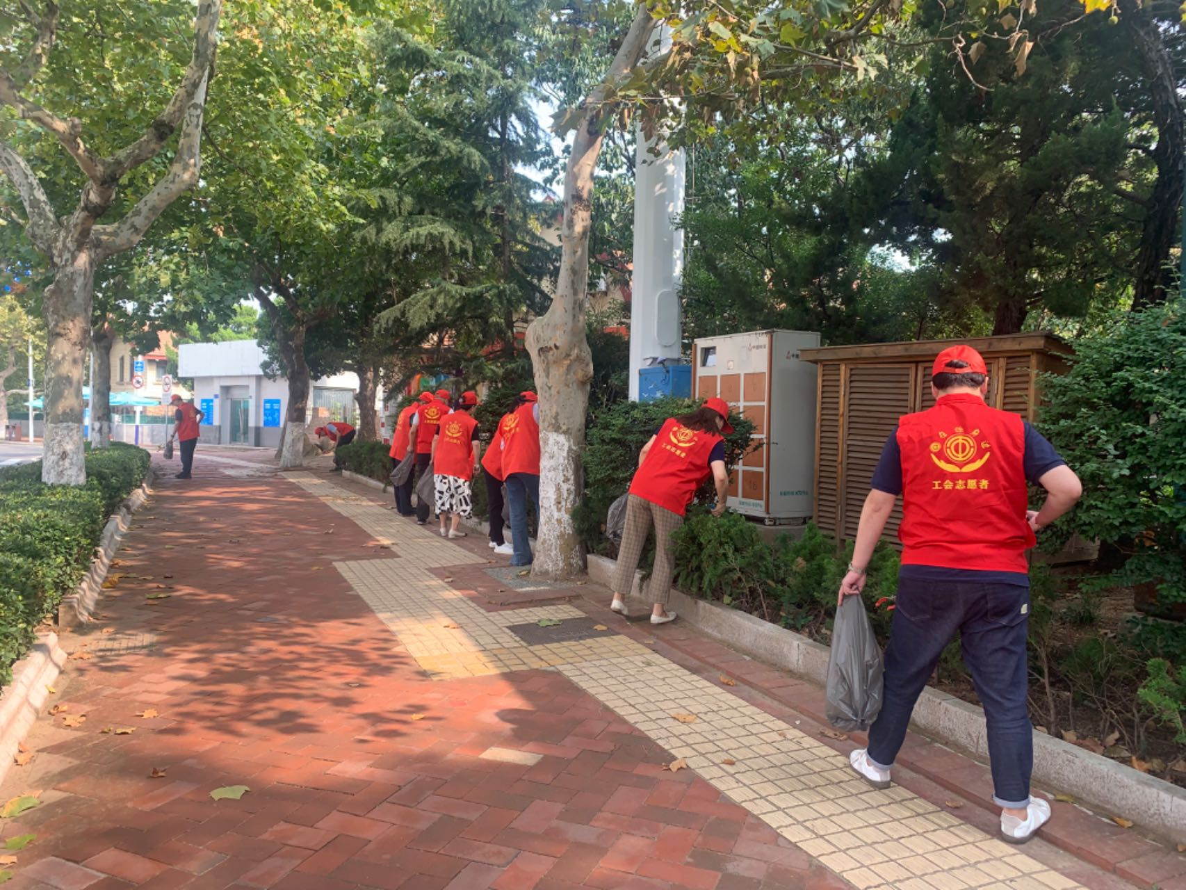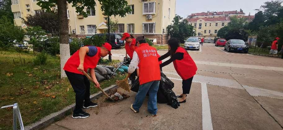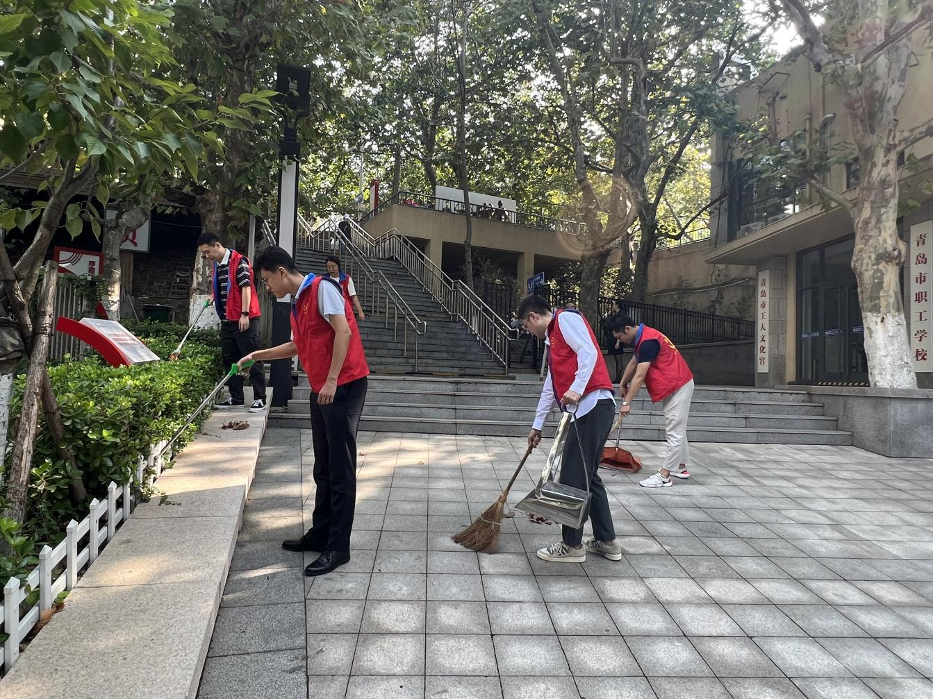 青岛市职工国际交流服务中心组织志愿者对办公区域周围场所及路边进行了清理打扫。