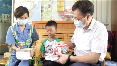 “非常感谢广州市总工会工作人员今天上门慰问,还送来了我儿子最喜欢的书籍和慰问品,让我感受到工会‘娘家人’的温暖。”梁美金告诉记者,她和丈夫来自肇庆,于2018年3月来到广州海珠区城市管理监督检查中心当保洁员,大儿子今年小学毕业准备升读初中,小儿子即将读小学二年级。由于家中父母年纪大病痛多、行动不方便、长期依靠药物治疗,家庭经济压力较大,孩子们平时要看书就从图书馆借来看,很少花钱买。这次接到广州市总工会开展“微心愿”活动的通知后,她与小儿子商量,并为他填写了想要的书籍的“微心愿”清单。梁美金说,如今正值高温季节,工会还派专人将防暑降温药品和清凉饮料送到了一线环卫工人的现场。
