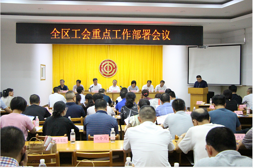 7月18日上午,即墨区总工会召开重点工作部署会议,传达省、市两级工会学习贯彻习近平总书记关于工人阶级和工会工作的重要论述会议精神,总结上半年工作,部署下半年全区工会重点工作任务。各镇街工会主席、副主席、社会化工作者,各局(公司)工会主席,区总工会直属基层工会主席,区总工会各部室负责人参加会议;区总工会主席衣服坡等领导班子成员出席会议并在主席台就坐。区总工会副主席陈学港主持会议。